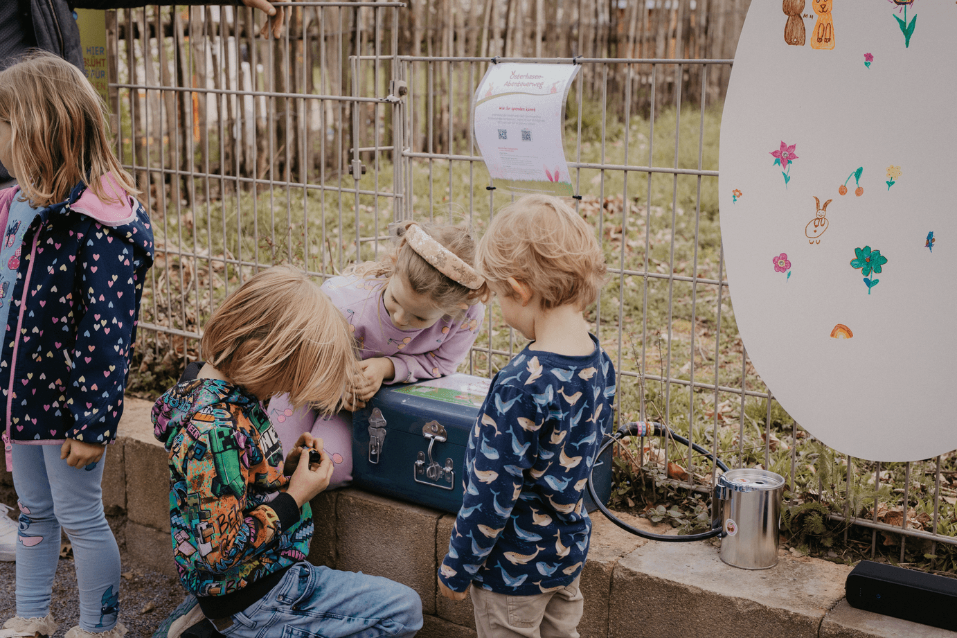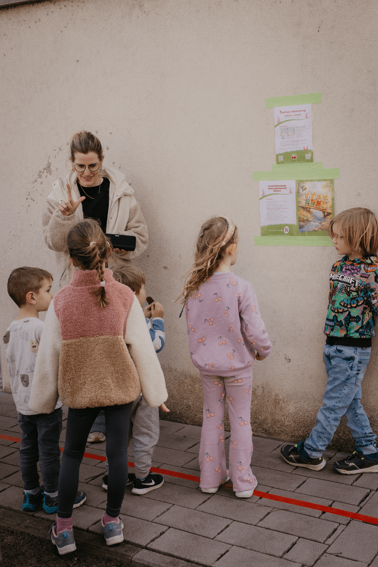 Ein besonderes Highlight des Weges: Die begleitende Hasengeschichte wurde liebevoll von Vorlesepatinnen, deren Enkelkinder selbst das Familienzentrum besuchen, sowie von Kerstin Jährling eingelesen. Dies macht das Projekt zu einem echten Generationen-Erlebnis mit Herz.